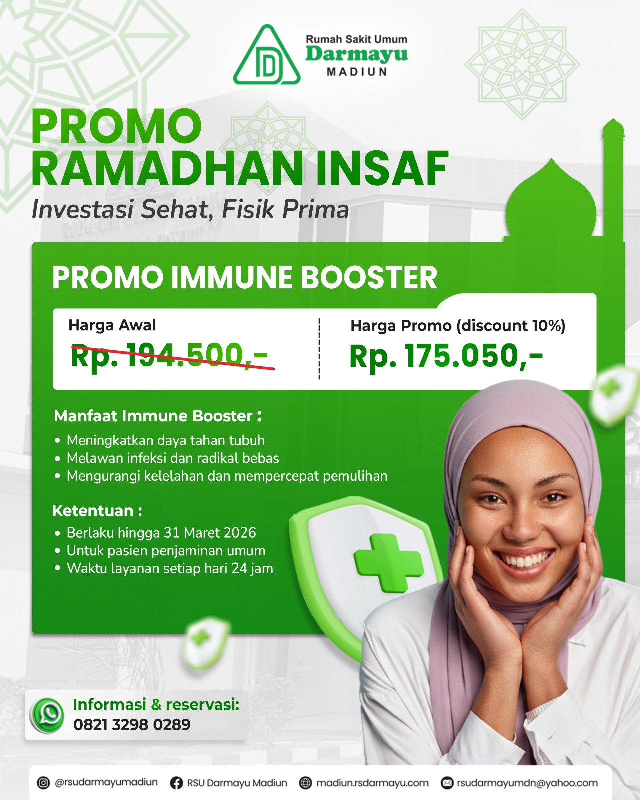 Mengenalkan Rumah Sakit Umum Darmayu Madiun sebagai Rumah Sakit yang berkualitas dan memberikan pelayanan dengan keramahan, kenyamanan, kesabaran, profesional, dengan mengutamakan keselamatan dan keamanan dalam memberikan pelayanan
